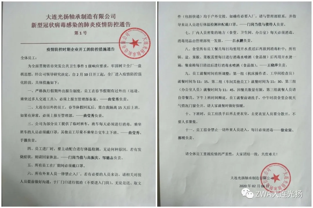這次疫情,如同一場無聲的戰(zhàn)爭,在這次戰(zhàn)斗中,大連光揚軸承制造有限公司的領(lǐng)導(dǎo)班子不等不靠、先知先覺迅速做出抗疫響應(yīng):